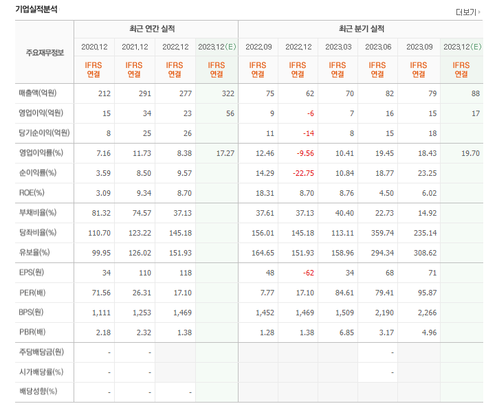 ⊙ 2023년 9 월 전년동기 연결기준 매출액 328.4 % 증가, 영업이익 23.5 % 감소, 당기순손실 42.6 % 감소했습니다.